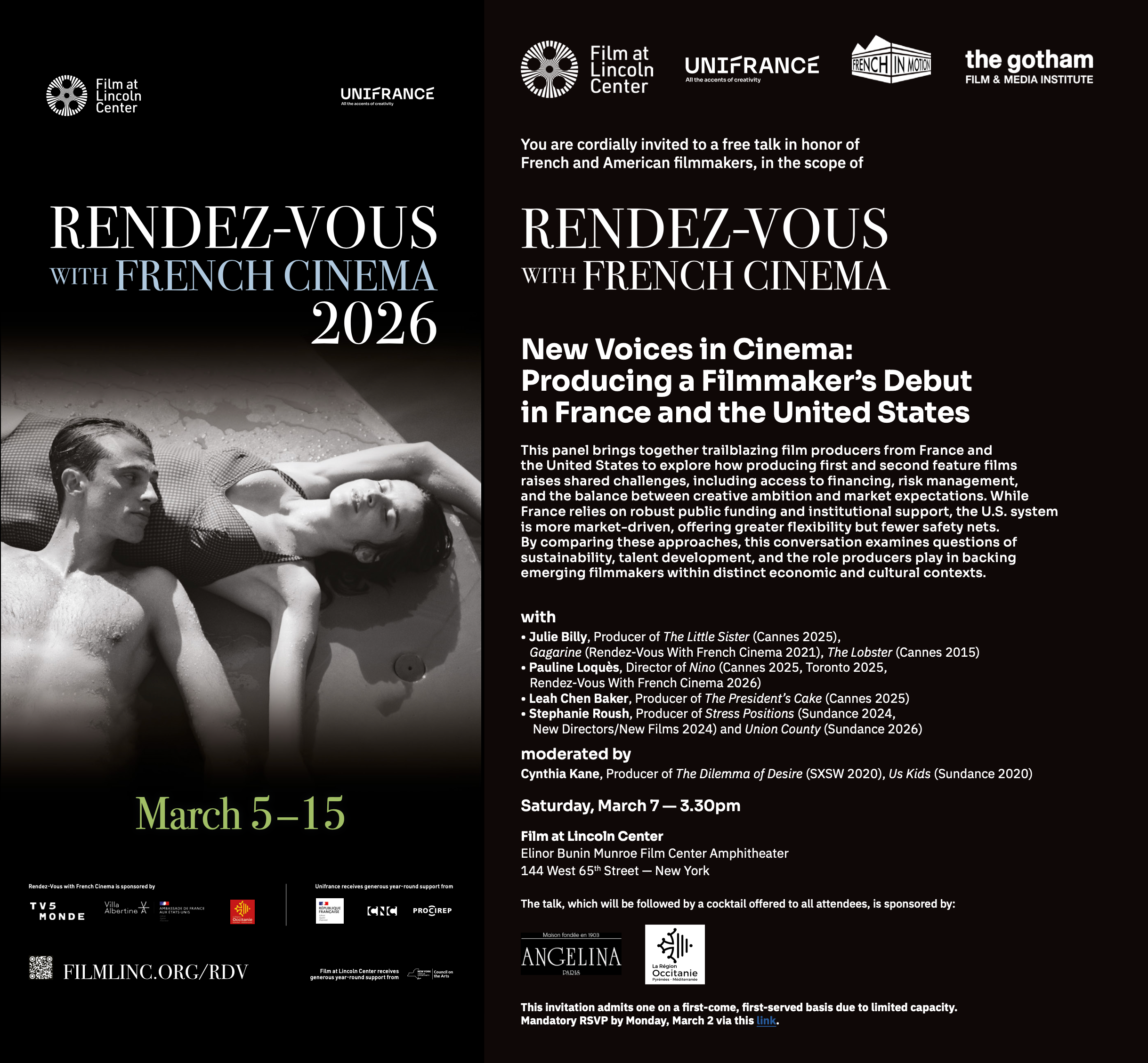 At the 2026 edition of Unifrance Rendez-vous with French Cinema, French In Motion, in partnership with The Gotham Film & Media Institute present a free panel discussion: New Voices in Cinema: Producing a Filmmaker’s Debut in France and the United States